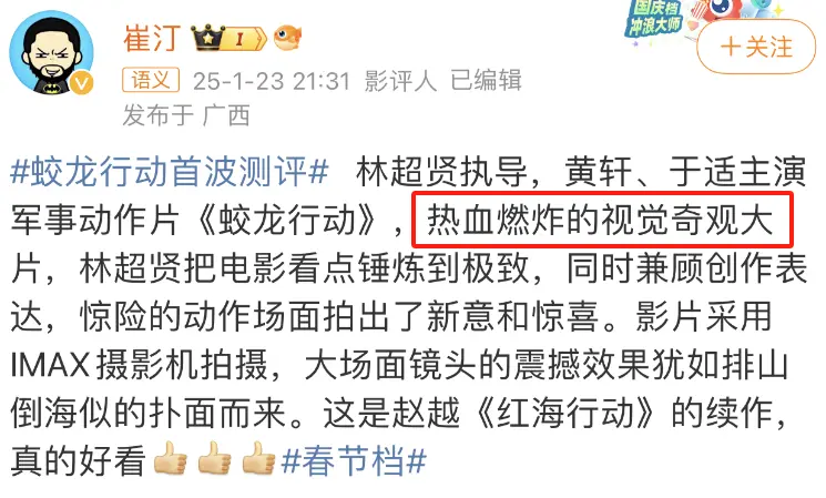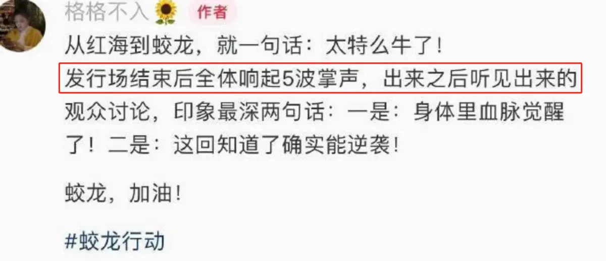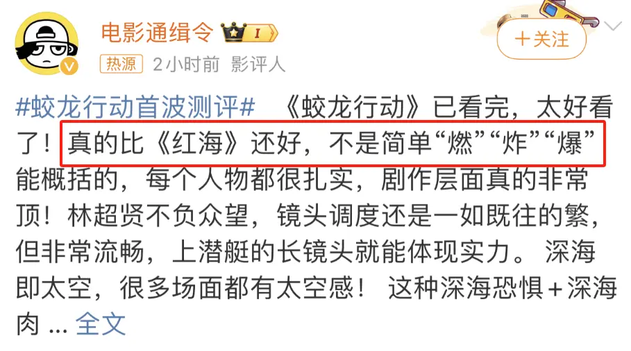 春节档的竞争归根结底是电影品质的较量,而《蛟龙行动》的首波反馈远超预期。